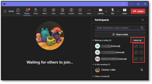 Step 2: In the participant pane, you can see who is waiting in the lobby, admit or reject individual participants, or admit all participants in the lobby.