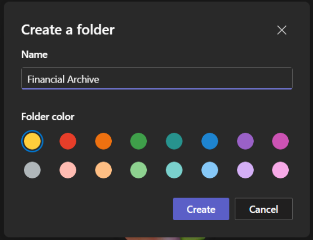 Continue by giving your folder a name, and feel free to pick a color for it too.